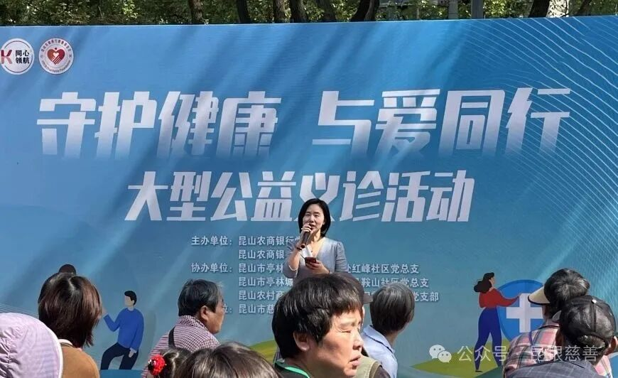 近日,昆山农商银行慈善基金会第十五场"守护健康 与爱同行"大型公益义诊活动在昆山市亭林城市管理办事处红峰社区和马鞍山社区同步举行。本次活动由昆山农商银行党委及昆山农商银行慈善基金会联合主办,红峰社区党总支、马鞍山社区党总支以及昆山农商银行震川支行党支部共同协办,并得到昆山市慈惠助老服务中心的医疗资源支持。活动现场吸引了近百名社区居民积极参与。