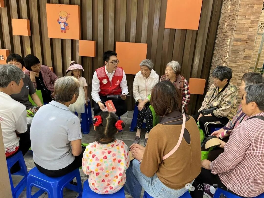居民们围坐在一起,专注聆听昆山农商银行震川支行党支部志愿者带来的金融知识讲解。志愿者们不时穿插提问,与居民积极互动,现场氛围轻松活跃。