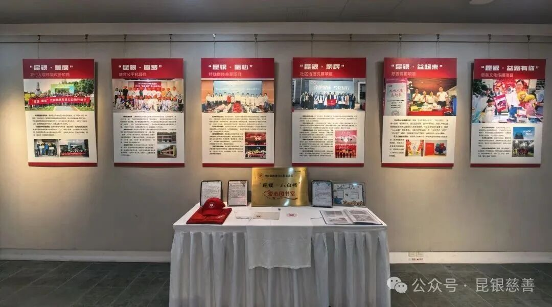 展览现场,昆山农商银行慈善基金会展区呈现满满的“慈善记忆”。有定格暖心瞬间的图片资料,有见证爱心落地的 “昆银・小白杨” 爱心图书室牌匾,还有字里行间满是感恩的安徽金寨县朱堂小学师生来信,更有承载志愿精神的文创产品,每一件都藏着践行慈善的初心。